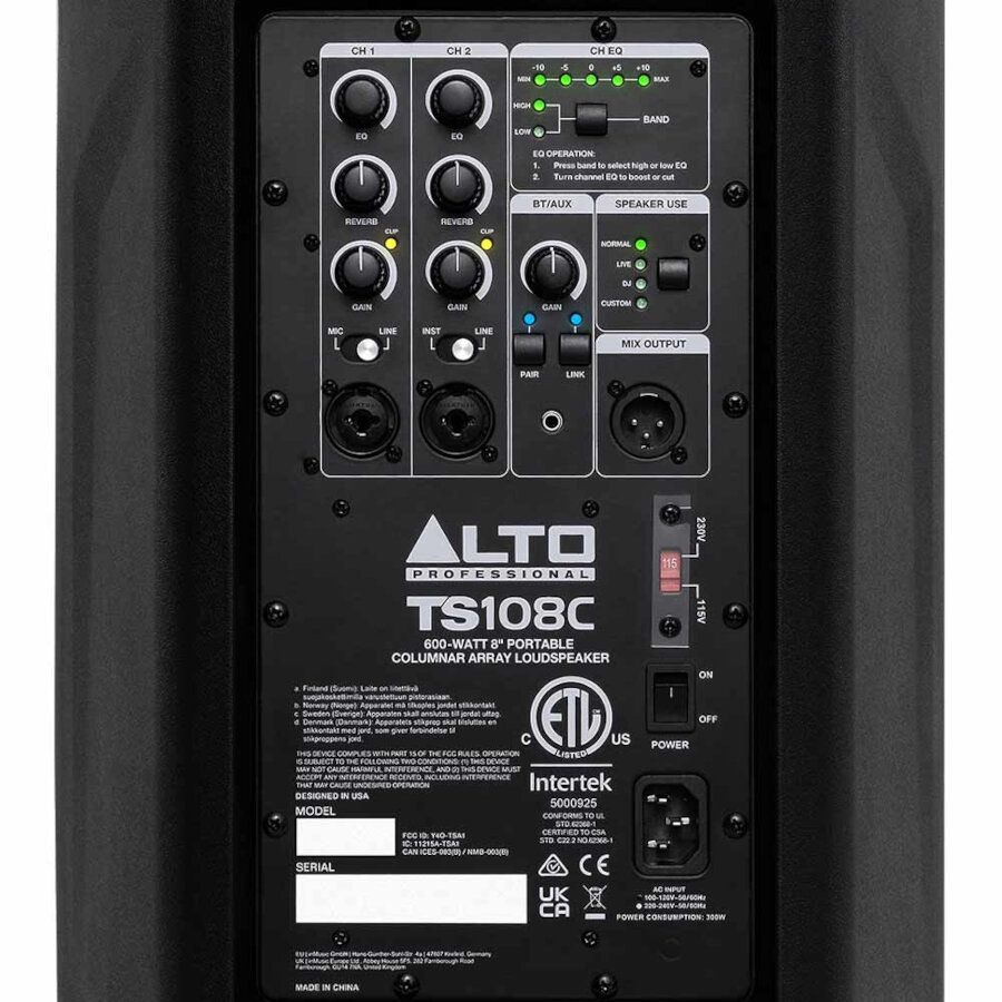 Alto Pro TS108C on kompakti, all-in-one -pilariarray-PA-kaiutin, joka on suunniteltu tuottamaan selkeää, tilan täyttävää ääntä ilman perinteisten laatikkokaiuttimien monimutkaisuutta.