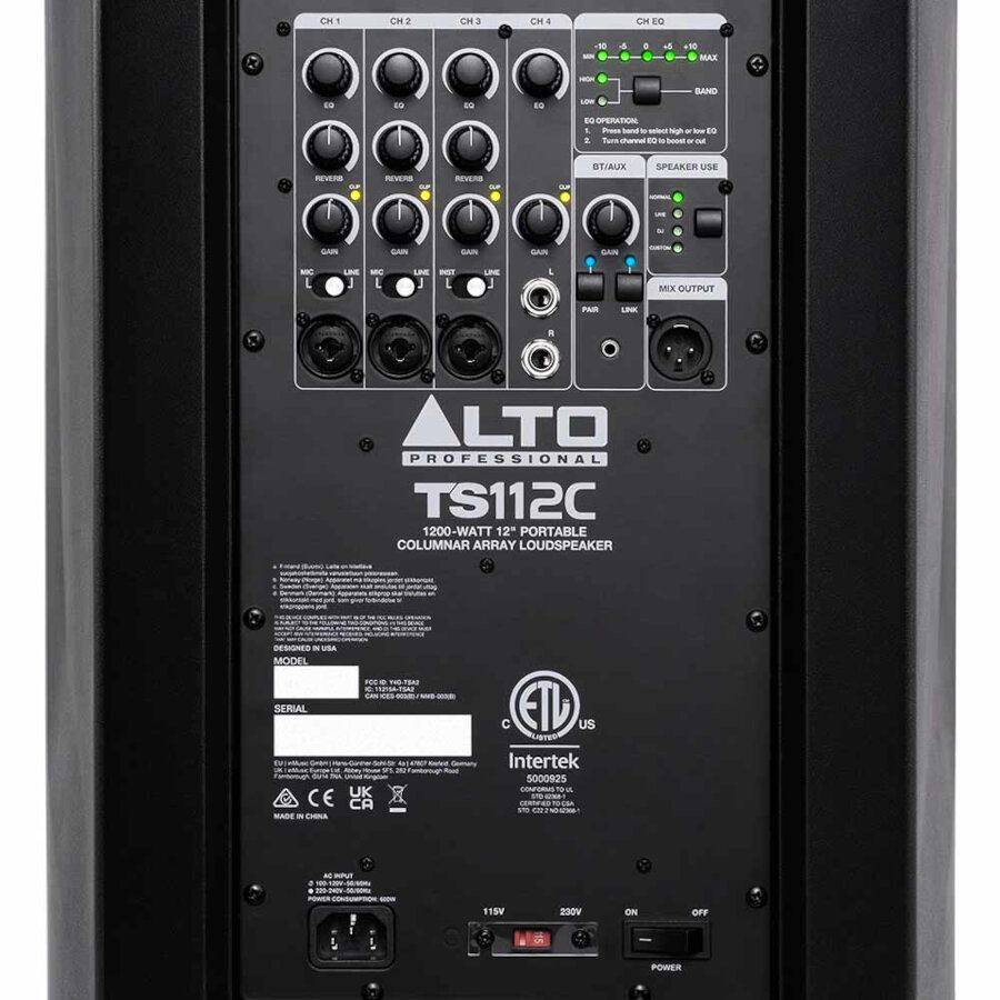 Alto Pro TS112C on tehokas, all-in-one -pilariarray-PA-kaiutin, joka on suunniteltu tuottamaan selkeää, tilan täyttävää ääntä helppokäyttöisyydellä ja siirrettävyydellä, johon tämän päivän esiintyjät, yritykset ja tapahtumajärjestäjät voivat luottaa.