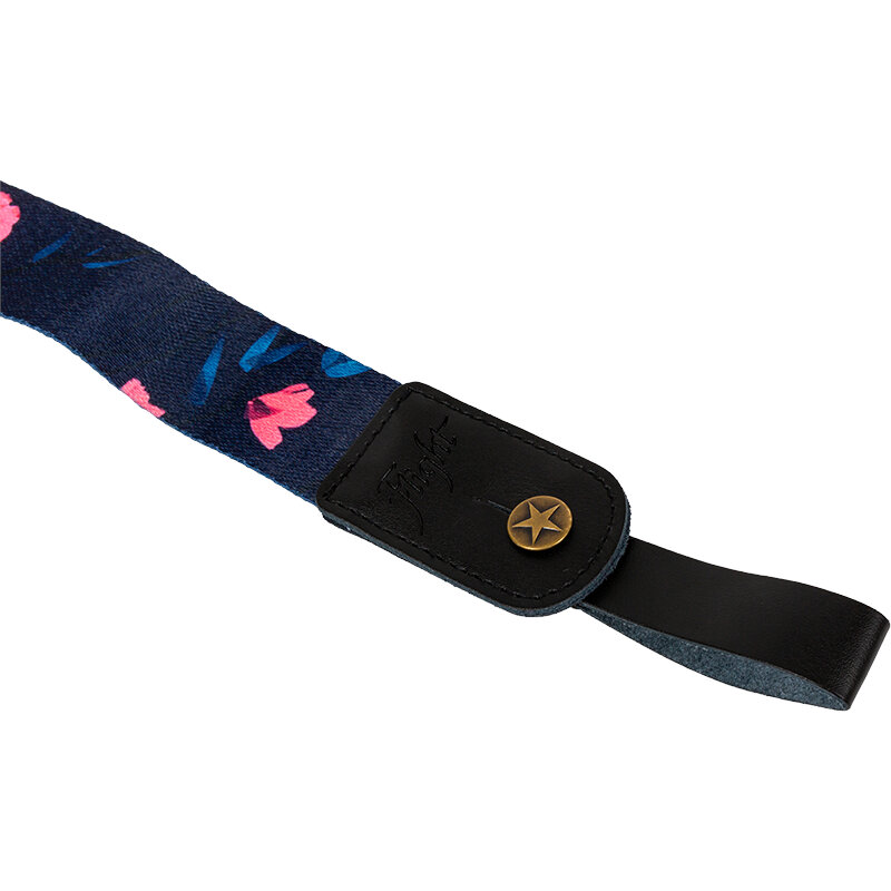 Flight S35 Sakura Ukulele Strap on erittäin laadukas ja kätevä hihna ukulelen kaveriksi! Tässä S35 Sakura -mallissa on upea kirsikankukkakuviointi tummansinisellä pohjalla. Tämä polyesterhihna on erittäin kestävä ja sen pituus on helposti säädettävissä. Nahkaiset hihnan päät lisäävät kestävyyttä ja antavat tälle oman lämpimän säväyksen. Mukana tulee myös nahkainen remmi napilla, jonka avulla saat hihnan kiinnitettyä ukulelen lapaan siten, että se on myös helposti irroitettavissa.