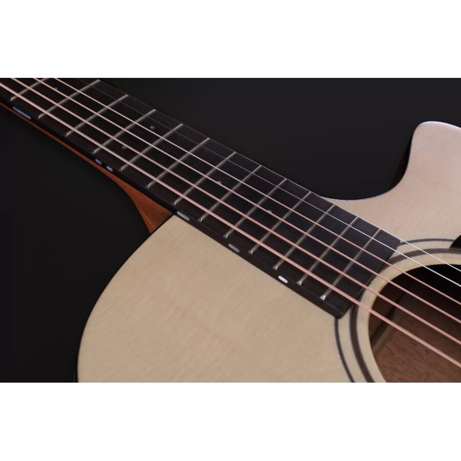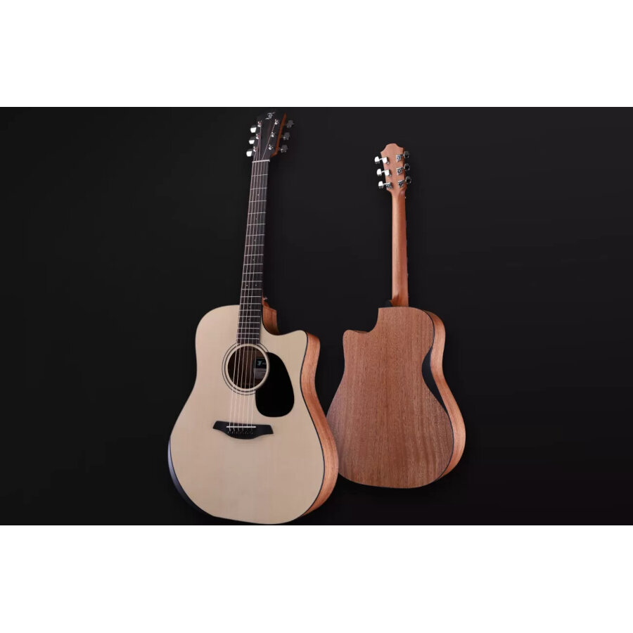 Luonnollinen kannen väri nostetaan esiin hienovaraisilla tummilla korostuksilla, kuten pähkinästä valmistetulla kaikuaukon tuplaruusukkeella ja tummilla reunalistoilla. Koko komeus viimeistellään Furchin tarkasti kitaran sointia varten kehitetyllä lakkauksella, joka on erittäin ohut ja jättää puun syyt auki soimaan vapaasti.