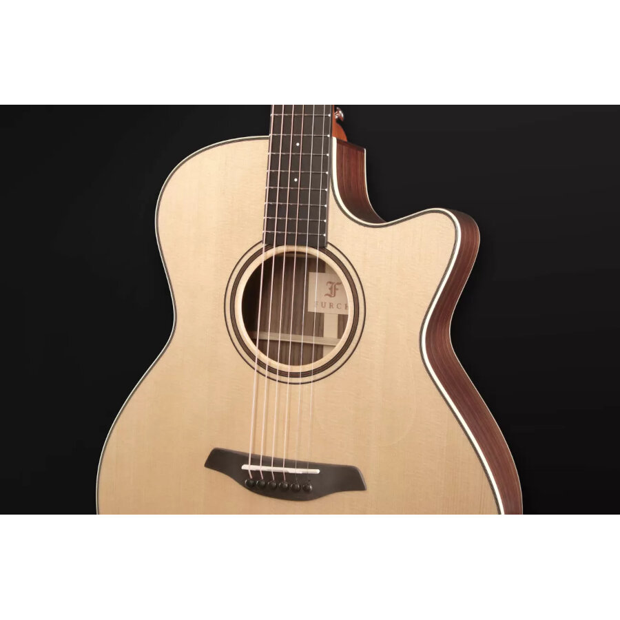 Furch Green Gc-SM tuo Furchin huikean soundin ja käsityönä tehtyjen soitinten tarkkuuden uudelle korkeammalle tasolle täyden kiiltolakkauksen ja AA-luokan kokopuisten materiaalien avulla! Tässä Green Gc-mallissa on tarkasti valikoidusta AA-luokan sitkakuusesta valmistettu kansi, jossa valitun materiaalin erinomaiset akustiset ominaisuudet hiotaan huippuunsa Furchin yksilöllisellä kannen virittämisprosessilla. Soittimen pohja ja sivut on valmistettu klassisesta premium-tason mahongista erittäin lämmintä sointia ja artikuloivaa keskialuetta varten. Tämä yhdistelmä yhdessä Furchin UV-pohjaisen Full-Pore kiiltolakkauksen kanssa tekee tästä soittimesta herkästi soittajan tatsiin reagoivan kokonaisuuden selkeällä ja vahvalla soundilla. Soittimen puiden luonnollinen väri nostetaan esiin hienovaraisilla yksityiskohdilla, kuten kaksikerroksisella reunalistalla sekä kaikuakkoa ympäröivällä pähkinästä valmistetulla tuplaruusukkeella. Esteetöntä soittoa varten Green Gc-SM:n kaula on viimeistelty erityisen sulavalla satiinisella sekä antibakteerisella Full-Pore Smooth-Slide -viimeistelyllä.