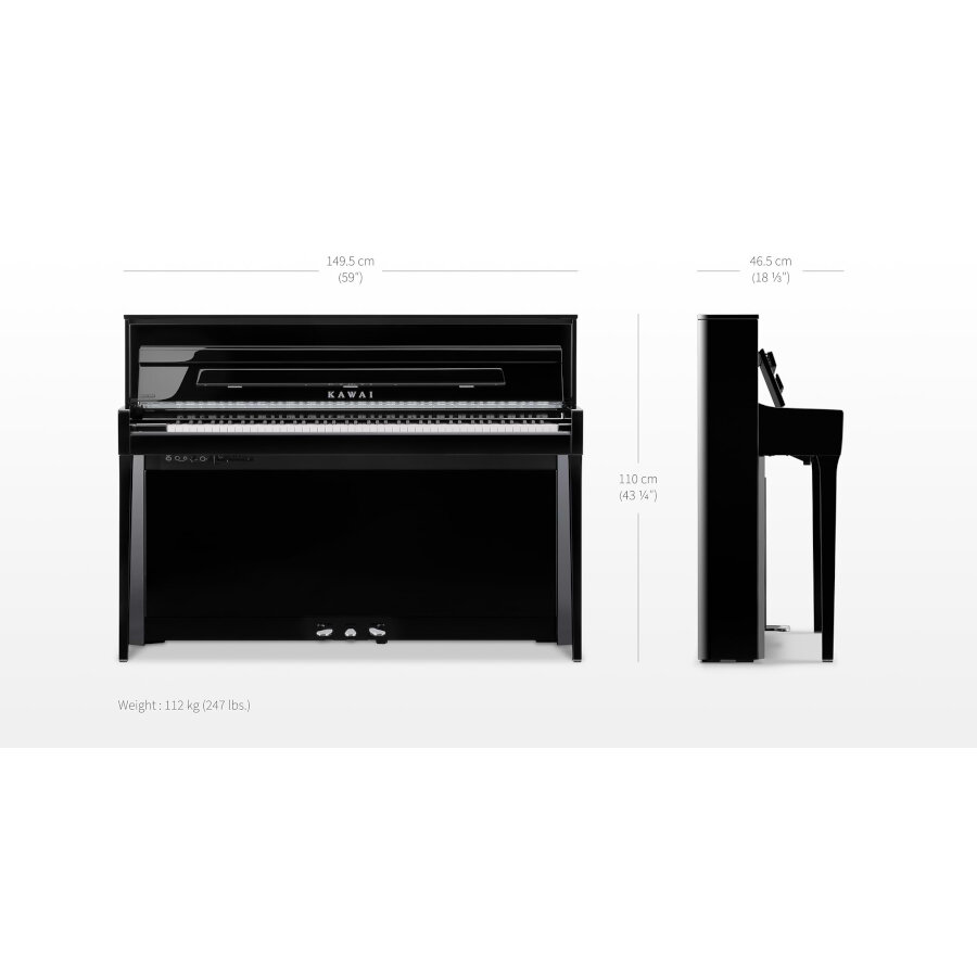 Kawai Novus NV6 tarjoaa todellisen akustisen pianon soittotuntuman erittäin sirorakenteisena digitaalipianona. NV6 käyttää samaa Millenium III Hybrid -koneistoa sammutusmekanismilla kuin Kawain korkeimman luokan pystypianotkin, jotta saat autenttisimman ja tutun soittotuntuman myös hybridiformaatissa. SK-EX Rendering -äänimoottori ja tarkoin valmistettu kaiutinjärjestelmä yhdessä Onkyon asiantuntijoiden kanssa kehitetyn kaikupohja-kaiutinjärjestelmän kanssa tuo Kawain maailmankuulut pianosoundit mihin tahansa tilaan. NV6 on samanaikaisesti tuttu, mutta entistä tarkemmin soittajaa palvelemaan hiottu järjestelmä, joka tekee soittamisesta huoletonta.