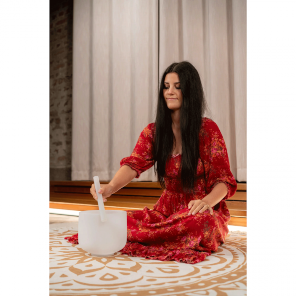 8" Root Chakra -äänimalja soi C5 nuotissa. Maljan soinnin on tarkoitus edistää elinvoimaa, itseluottamusta, tasaisuutta, päättäväisyyttä ja ruoansulatusta.