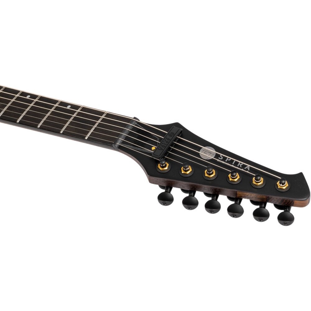 Spira Guitars S-1000 Pro tarjoaa korkeinta mahdollista laatutasoa saavutettavalla hinnalla! S-1000 tuo Spiran mallistoon eksoottisia ja upeita puumateriaaleja sekä korkeinta käsityön tasoa mikä tekee tästä varteenotettavan soittimen ammattikäyttöön studioon, keikoille ja säveltämiseen. Upeasta black limbasta valmistettu runko on varustettu paksulla wenge-kannella sekä suoraan runkoon liimatulla viiden palan pähkinä/wengekaulalla. Tämä yhdistelmä on sekä vakaa että soinniltaan verraton ja näyttää myös yksinkertaisesti hyvältä! Ohut "Modern D"-kaulaprofiili sekä tummasta eebenpuusta valmistettu otelauta Jumbo-nauhoilla tekevät soitettavuudesta hintaluokassaankin ensiluokkaista.